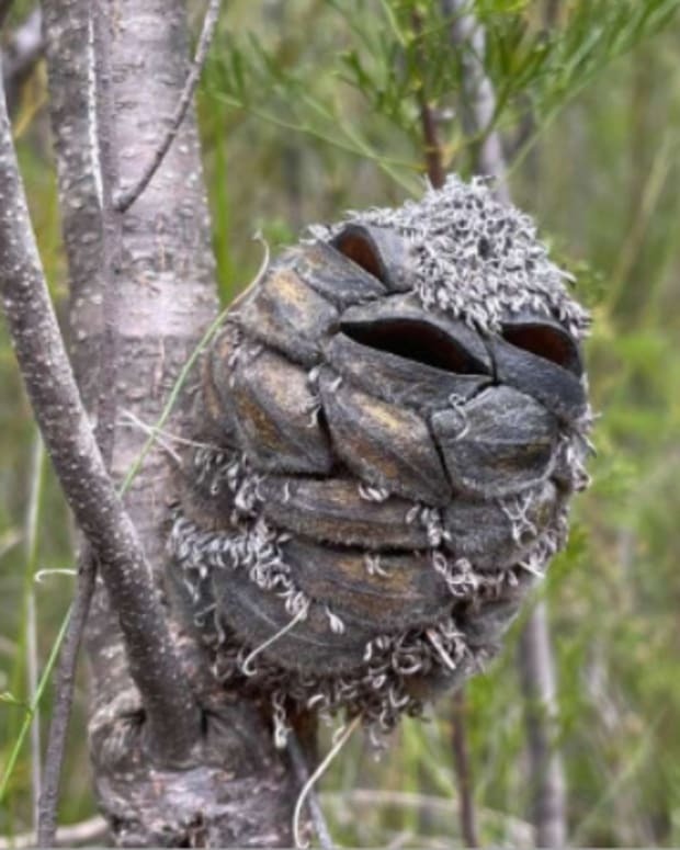 Tačiau kai ji padidino nuotrauką, realybė ją sukrėtė – ir ji prapliupo juoktis. Tas „paukštis“ visai nebuvo paukštis. Tai buvo banksijos ankštis, keistas vietinis augalas, kuris buvo nepaprastai panašus į mažą pelėdą, su dirbtinėmis „plunksnomis“ ir didelėmis, apvaliomis akimis. Gamta iškrėtė puikų pokštą.