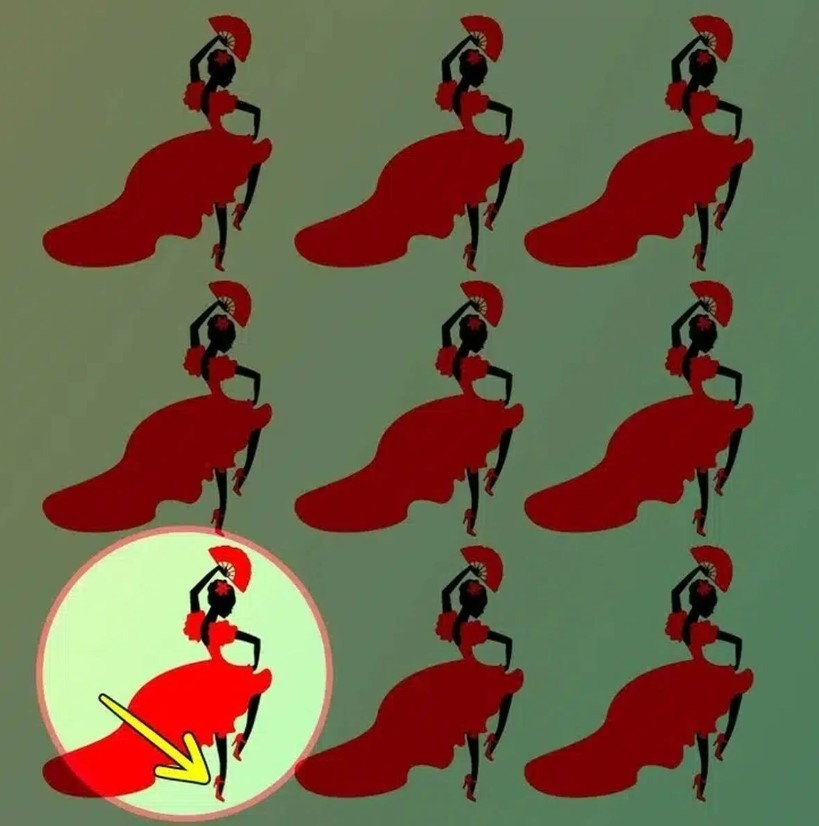 Šioje vizualioje dėlionėje jums pateikiama grupė siluetų, kurie atrodo beveik identiški. Tačiau vienas iš jų nėra visiškai toks pats. Jūsų užduotis paprasta – rasti tą, kuris išsiskiria.