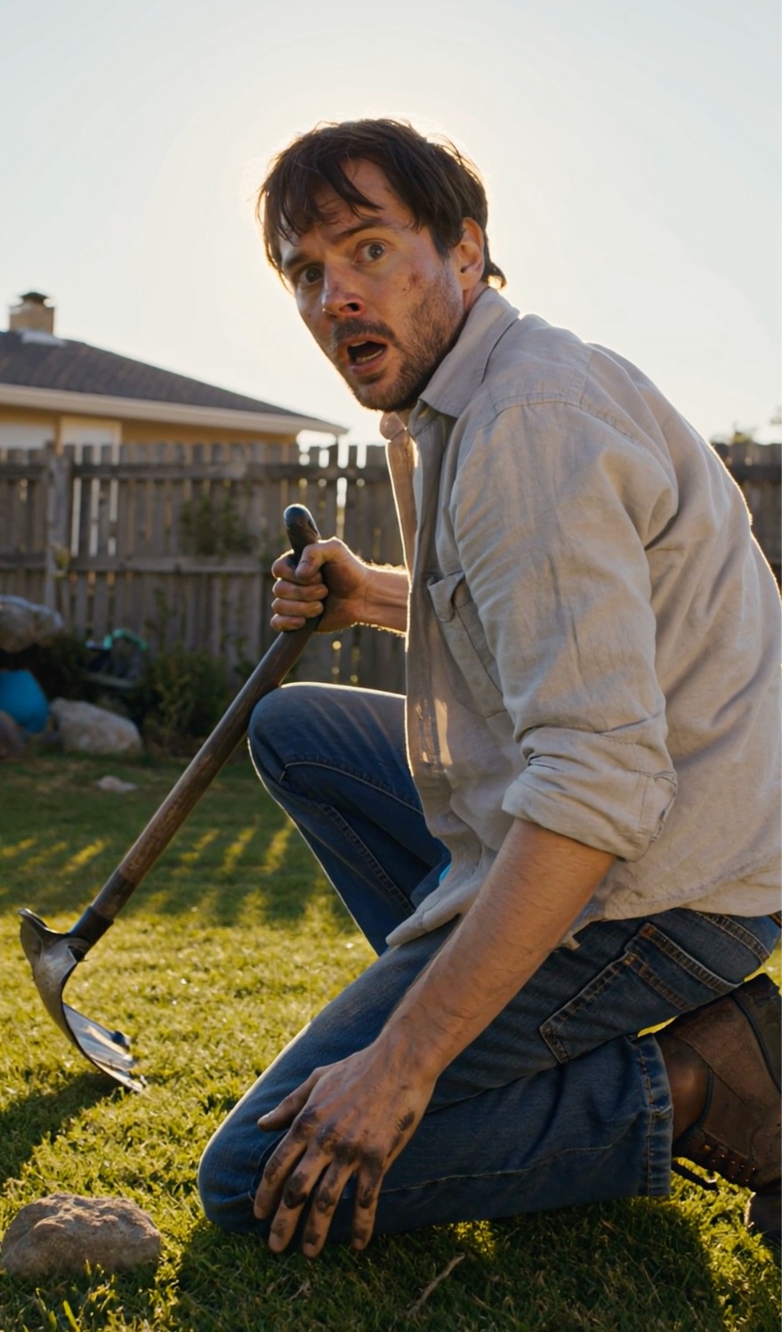 Jis sušlubavo atgal, širdis daužėsi, tada paskambino žmonai, kuri išbėgo į kiemą. Ji sušnibždėjo ir užsidengė burną, šnibždėdama: „O Dieve… tai žmogus.“ Vaikai, pajutę įtampą, buvo greitai įvesti į vidų. Džonas paėmė telefoną ir surinko 911, rankos drebėjo, kai jis bandė paaiškinti, ką ką tik iškasė.