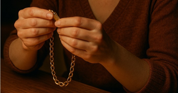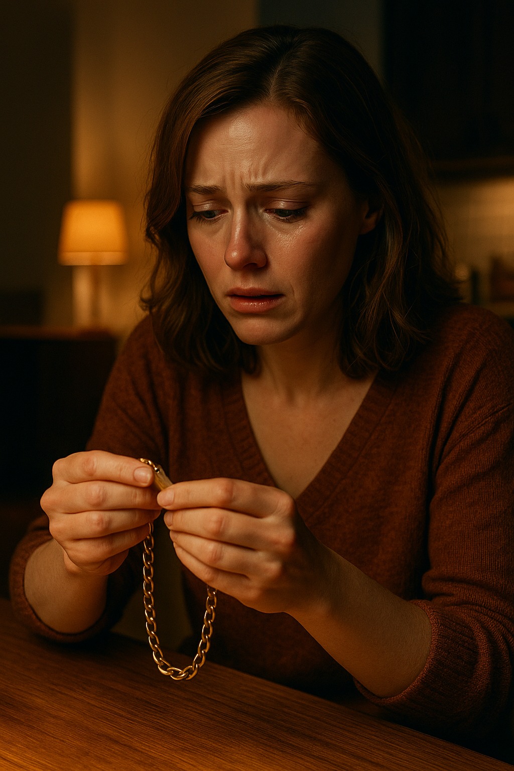 Kai vyras grįžo namo, ji sėdėjo virtuvėje su apyranke rankose. Priešais ją – atversta užrašas. Jis sustingo duryse. Nebuvo reikalo ištarti nė žodžio: iš jo veido buvo matyti, kad jis žinojo, jog paslaptis atskleista.