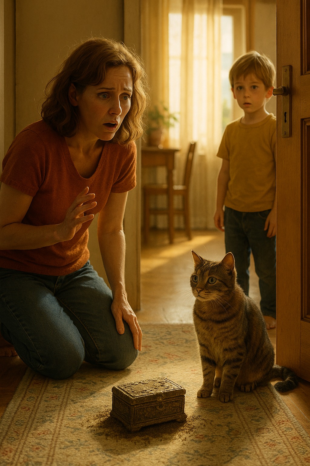 O katinas Oskaras… Jis vėl vaikščiojo vakarais, grįždavo purvinas ir patenkintas, kaip visada. Bet kiekvieną kartą, kai jis įeidavo į namus, Anna ir Lukas žiūrėdavo į jį su šypsena ir lengvu drebuliu. Nes dabar jie žinojo: kartais net ir pačias įprastines katės gali tapti paslapties nešėjomis, pakeisti svetimą likimą ir sugrąžinti prarastą praeitį.