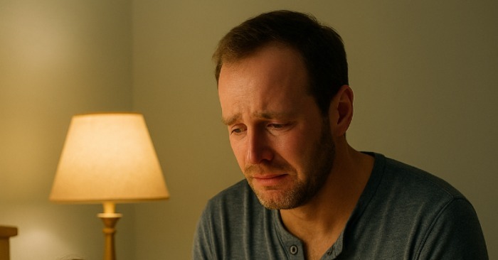 Jis įėjo į kambarį ir atsisėdo ant lovos krašto.