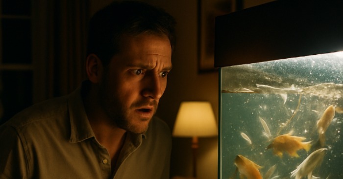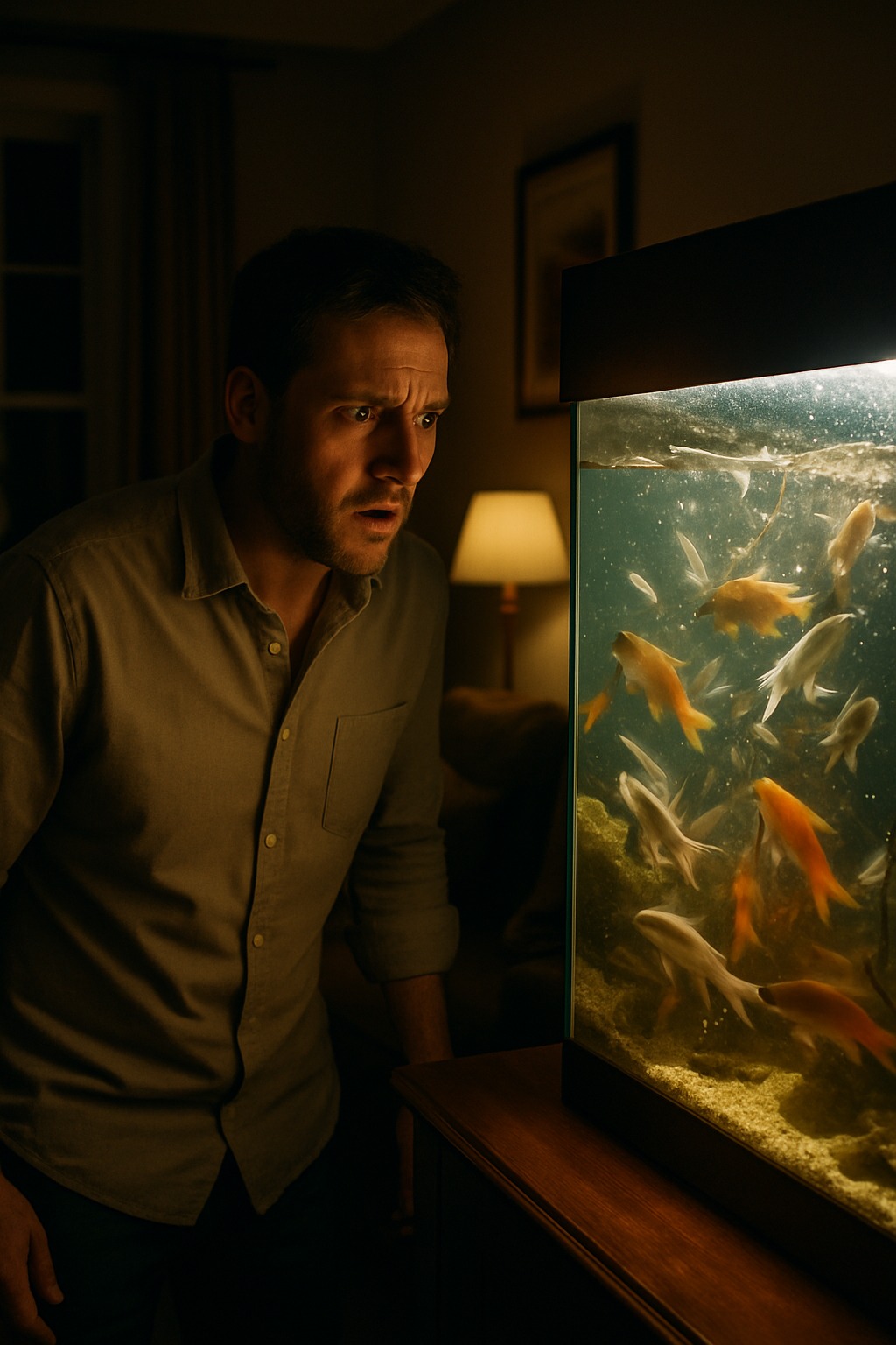 Bet vieną naktį jis pastebėjo kažką keisto. Žuvys, kurios paprastai judėjo sklandžiai ir ramiai, staiga pradėjo mėtis po akvariumą, trankytis į stiklą, šokti iš vandens.