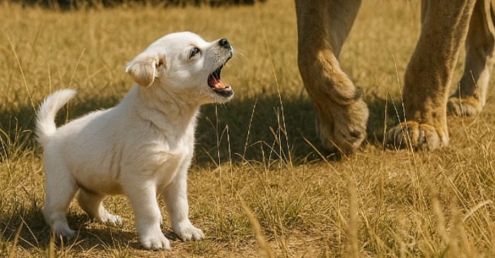 Marija sušuko, širdis šoktelėjo į kulnus: jos mažytis šuniukas atsidūrė tiesiai priešais gyvūnų karalių.