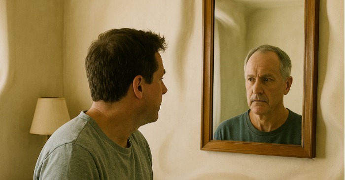 Maiklas atmerkė akis ir suprato, kad kažkas ne taip. Lubos atrodė pažįstamos, bet sienų spalva buvo kitokia. Ant naktinio staliuko gulėjo nuotrauka, kurioje jis buvo užfiksuotas su moterimi ir dviem vaikais, kurių niekada nebuvo matęs. Spintoje kabėjo ne jo dydžio marškiniai, o virtuvėje jis rado puodelį su užrašu „Geriausiam tėčiui“.