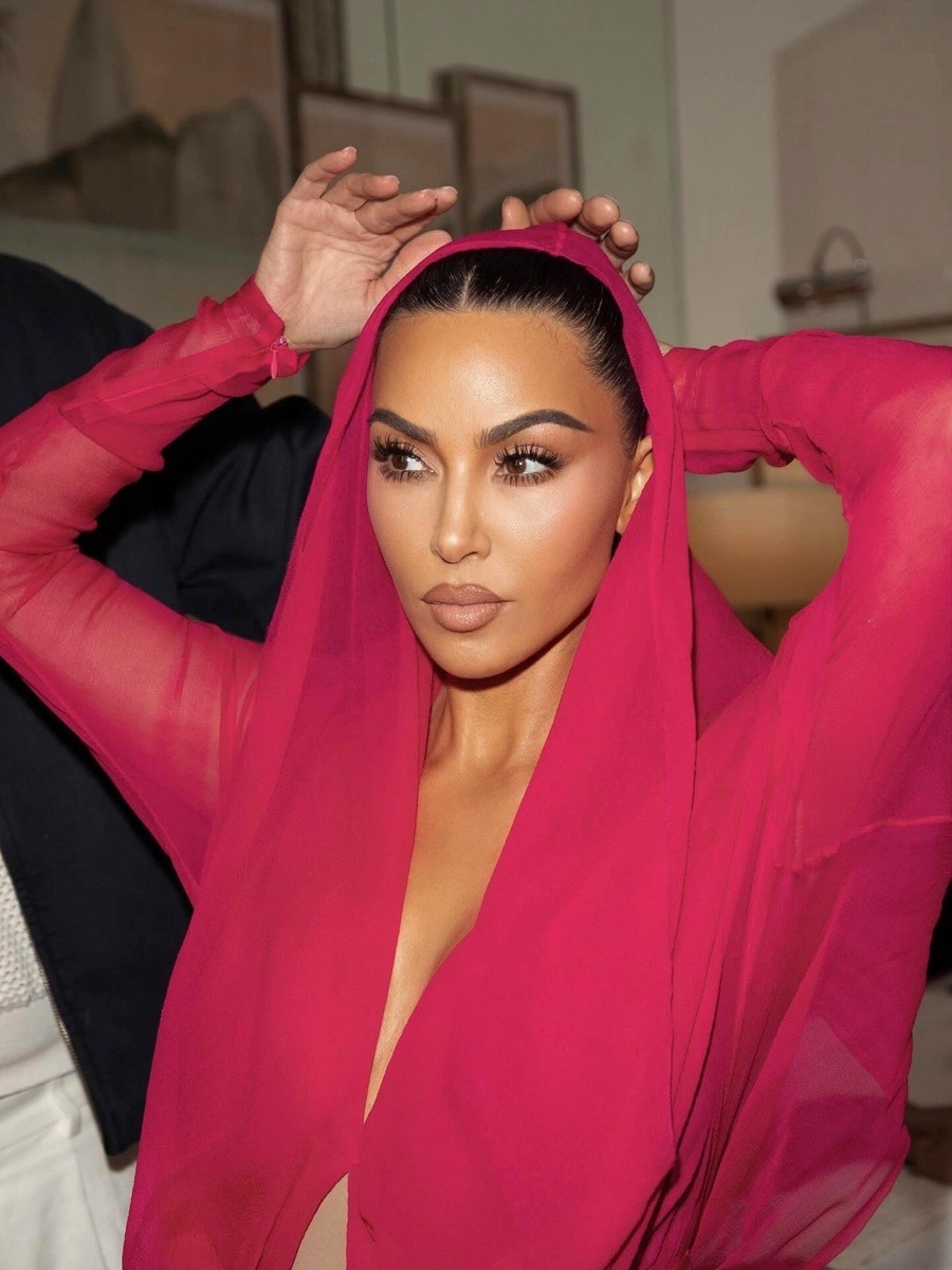 Savo vizitui Kim pasirinko sodriai rožinę suknelę, pasiūtą iš permatomos medžiagos. Ji pabrėžė jos išskirtines kūno linijas ir sukūrė tobulai kinematografišką siluetą.