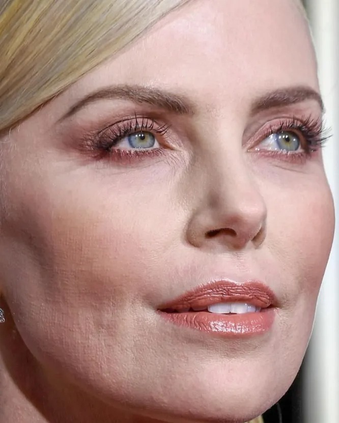 Iš arti Charlize makiažas verčia susimąstyti: ar ji tikrai gulėjo ant pagalvės vos prieš sekundę? Jos oda prižiūrėta ir stangri – 1975 m. gimusi aktorė puikiai rūpinasi savimi. Tačiau stambiame plane matomos keistos žymės ant jos skruostų, žymės, kurias vizažistai paprastai paslepia. Net ir nepriekaištingai atrodanti žvaigždė yra žmogus.