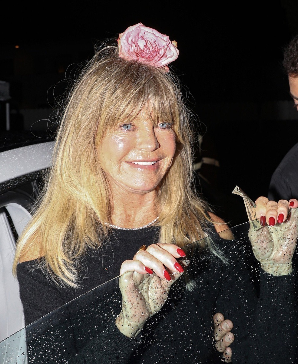 Goldie Hawn vėl patraukė gerbėjų dėmesį po vakaro, praleisto Santa Monikoje. Žvaigždė buvo pastebėta prie garsaus „Giorgio Baldi“ restorano, kur leido laiką su draugais.