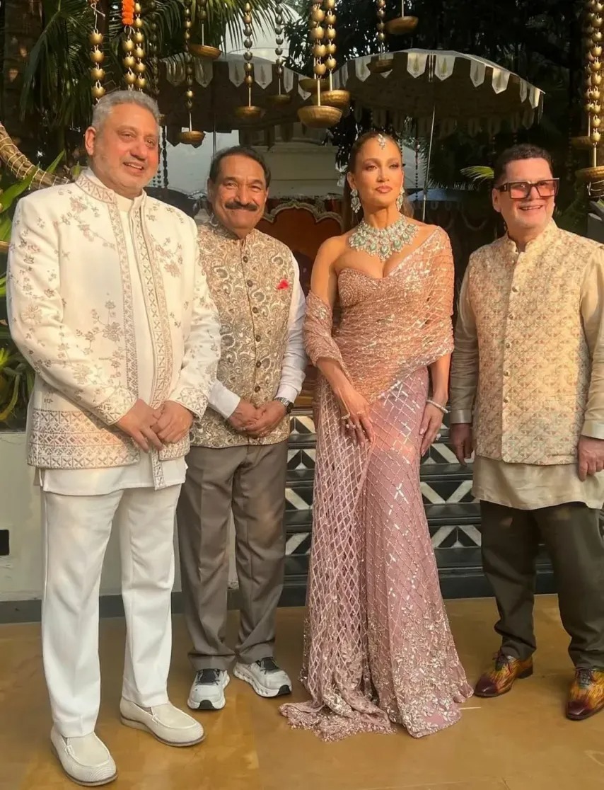 Organizatoriai taip pat paskelbė naujas Lopez nuotraukas su tradiciniu indų dizainerių sukurtu sariu.