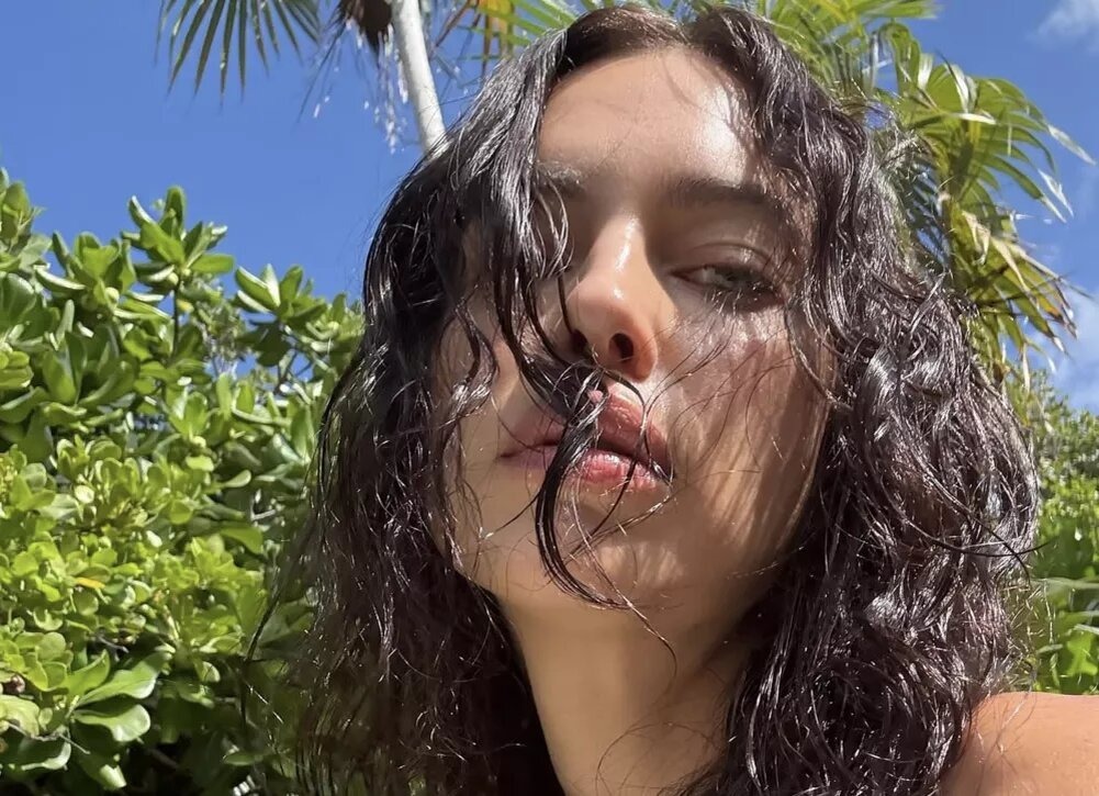 Pirmosiose nuotraukose Irina pozuoja ryškiame tropiniame fone. Saulės spinduliai švelniai apšviečia jos veidą, sukurdami ramybės ir lengvumo atmosferą. Jos palaidi plaukai ir natūrali išvaizda išryškina natūralų grožį ir liekną figūrą.