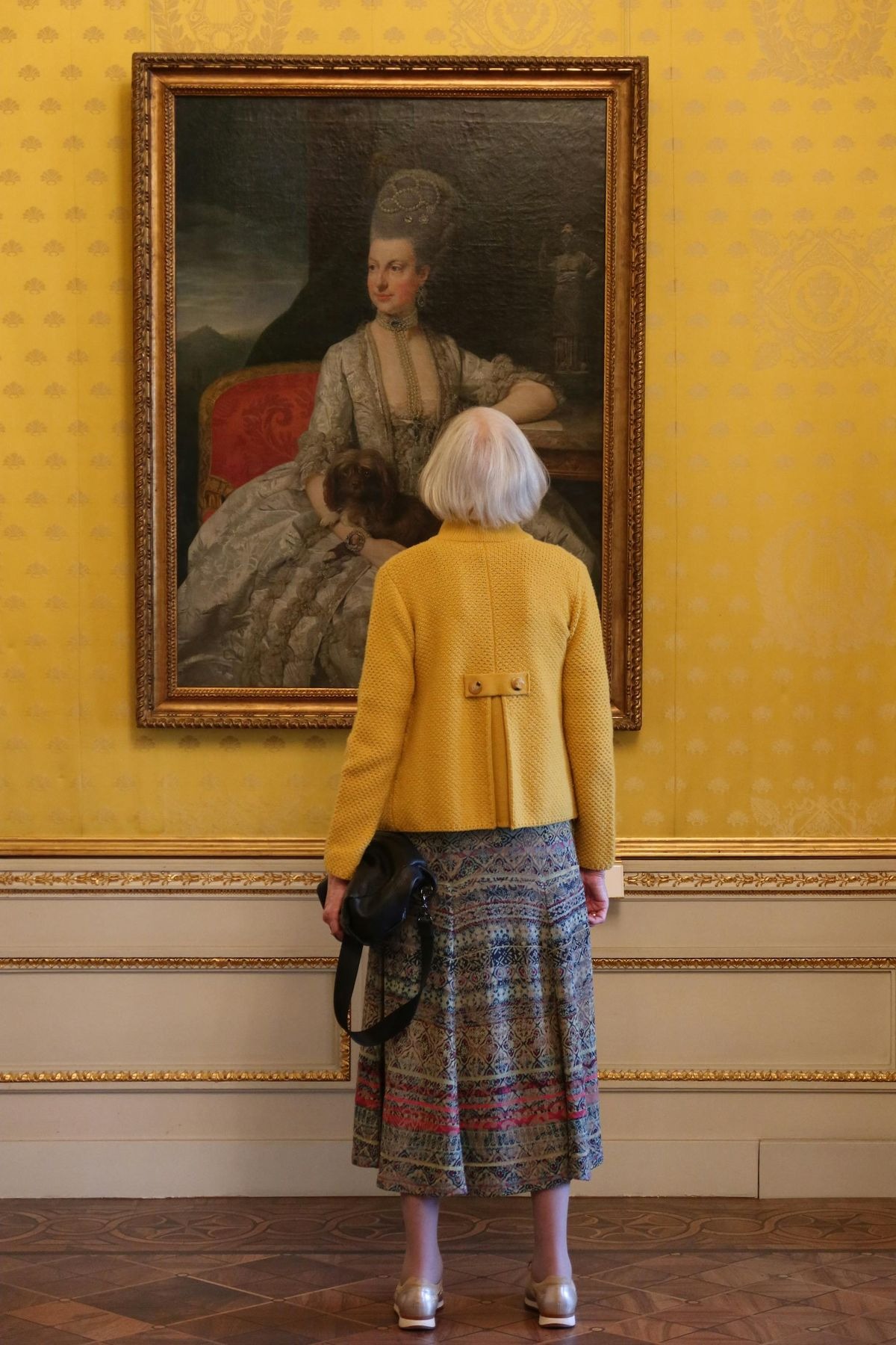 Ji sustojo priešais nedidelį impresionistinį paveikslą, o tada tęsė toliau, iki pat kambario galo.
