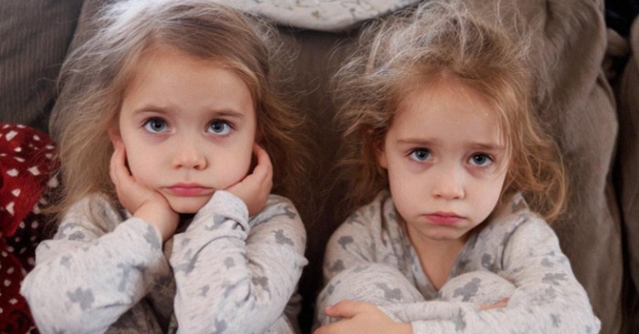 Jis parodė į sofą. Mūsų šešiametės dvynės Ema ir Lilė buvo susisukusios viena šalia kitos. Jos buvo avėdamos batus, o kuprinės gulėjo ant grindų šalia jų.