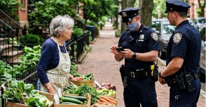 Tačiau policijos pareigūnai nereagavo. Vienas jų jau buvo pradėjęs krauti dėžes nuo sunkvežimio. Nieko nesakęs, jis čiupo krūvą žolelių ir sumetė jas į šiukšlių konteinerį ant šaligatvio. Tada atėjo agurkai, morkos ir bulvės. Viskas, ką ji kruopščiai paruošė tą rytą, dingo per kelias sekundes.