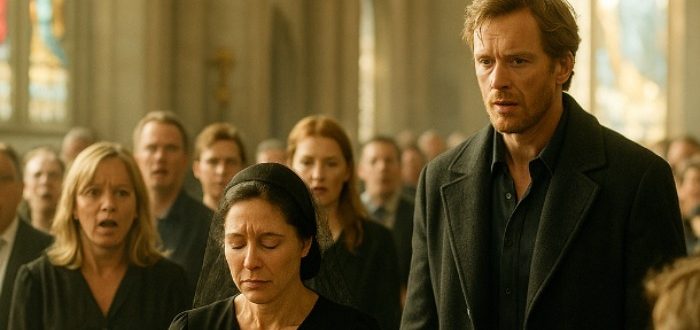 Bažnyčia buvo pilna žmonių. Vieni laikė rankose baltas rožes, kiti tiesiog stovėjo tylėdami ir žiūrėjo į karstą. Ten, šalia jo, juodame skarele, stovėjo Marija – našlė, vos sulaikanti